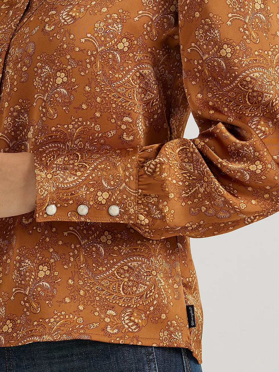 Wrangler Retro Vintage Ladies Rodeo Blouse Polyster Satin Brown
