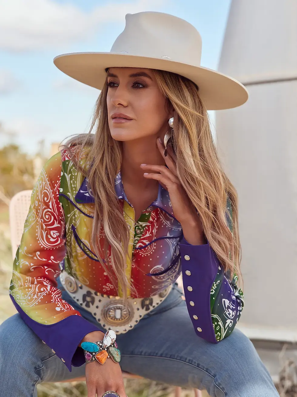 Wrangler x Lainey Wilson Rainbow Bandana Western Snap Shirt in Rodeo Ben
